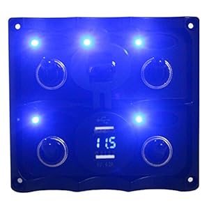 Bandc 5 Way Toggle Switch Panel With USB SOCKET & Blue VOLT GAUGE For RVs/Boat/Caravan