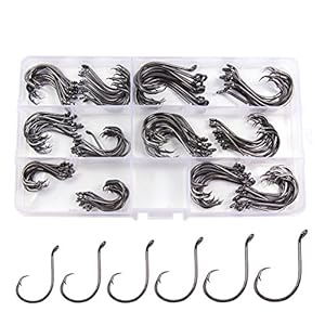 Package Included: 150pcs/lot, 25pcs each for size #1, 1/0, 2/0, 3/0, 4/0, 5/0 In A Reusable Plastic Box