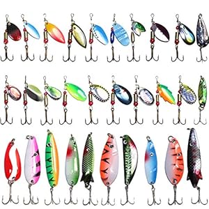 Croch 30pcs Spinner Baits Metal Fishing Lures with Treble Hooks