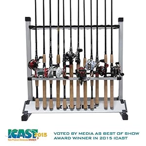PROTECTS and ORGANIZES a rod collection of up to 24 fishing rods. 24 rod rack is great for any type of fishing pole. The 12 rod rack is suitable for smaller diameter rods such as freshwater bass rods.