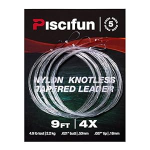 Piscifun Fly Fishing Tapered Leader with Loop-9′ 5 Pack