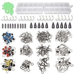 PLUSINNO fishing tackle set collects nearly all accessories that fishing needs,including lures, hooks, Jig Head, Weights Sinker, Line Stopper, Barrel Swivel, TackIe Box. With it,you do not need to buy other accessories from other sellers. It’s powerful fishing catching seduction.