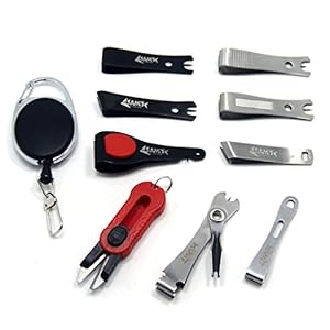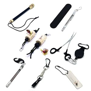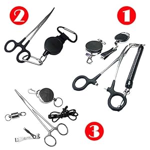 SAMS Anglers Vest Pack Assortment 7-Inch Curved Rivergrip Forceps with Retractable Gear Carabiner Zinger Nipper Lanyard Tool Kit