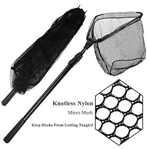 Shelure Folding Mesh Bag Fishing Landing Net with ABS Extending Telescoping Pole Handle