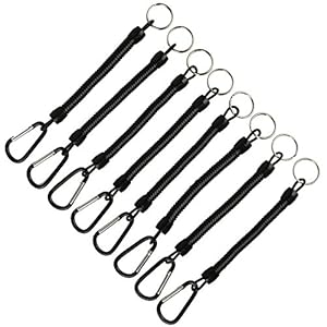 Shelure Black Fishing Lanyard Accessories Plastic Retractable Coiled Tether with Carabiner for Pliers Lip Grips Tackle Fish Tools (Pack of 8)