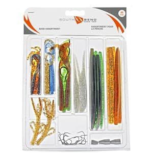 Kit includes: slo-fall worms, ribbon tail worms, jerk shads, creature baits, beads, worm hooks and steel worm weights Great addition to any tackle box Makes a great gift