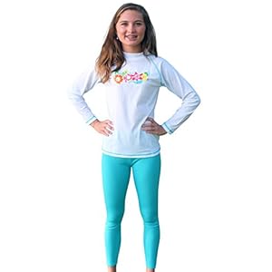 Sun Emporium 2-piece UV Sun Protective Long Sleeve Swim Shirt and Tights Swimwear Set for Girls- UPF/SPF Protection – sizes 4-14.