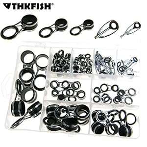 THKFISH Freshwater Saltwater Black Silver Tarnish Fishing Rod Parts Tip Tops Black Stainless Repair Guides DIY Set Kits
