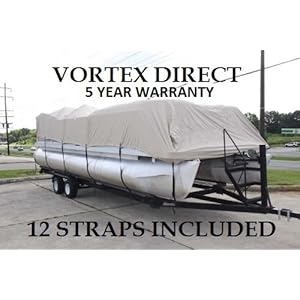 NEW BEIGE 20 FT VORTEX ULTRA 5 YEAR CANVAS PONTOON/DECK BOAT COVER, ELASTIC, STRAP SYSTEM, FITS 18’1″ FT TO 20′ LONG DECK AREA, UP TO 102″ BEAM (FAST FREE SHIPPING – 1 TO 4 BUSINESS DAY DELIVERY)