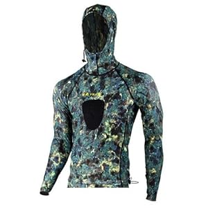 New Tilos UV Spearfishing Green Camouflage Lycra Spandex Hooded Shirt for Use Over a Standard Wetsuit (Size Medium)