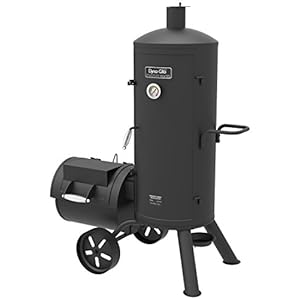 3-in-1 smoker, barbecue and grill with 670 square inches cooking surface in main chamber and 355 square inches in firebox chamber