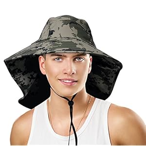 Made of 100% Polyester Fiber Cotton and breathable lining material.With UPF 50+ excellent SUN PROTECTION.Super comfortable and lightweight hat.With the Adjustable Chin Strap, you can keep this Camouflage Hat stable in a strong wind weather by tying the strap of the hat.