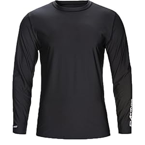 HIGH TECH FABRIC – High tech stretch fabric and stronger than most rash guards so it holds up over time. It is also UV50+ rated to protect you from the sun. It is also water repellent and allows for low water absorption for a lighter weight and faster drying. Designed to stay comfortable all day. -