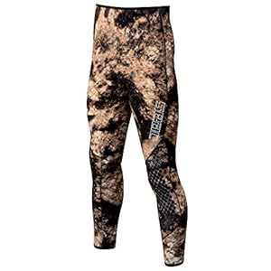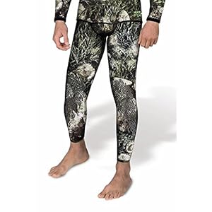 Open cell neoprene wetsuit pants for men with proprietary camouflage design; 5mm thickness for diving in cooler waters