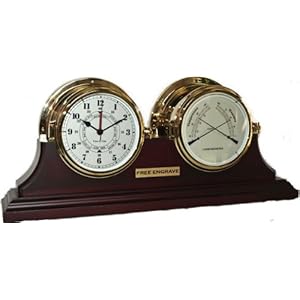 Fischer 1486-22 Marine Barometer with Quartz Clock