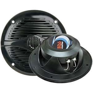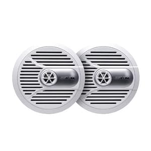 Speakers: 2-way 6-1/2 marine speakers with grilles (pair), injection-molded polypropylene cone woofer with rubber surround, 1 balanced-dome tweeter built into grille, UV-resistant fixed grille design, power range: 2-50 watts RMS (150 watts peak pow