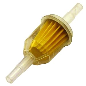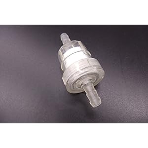 This is a Universal In-line Fuel Filter for 1/4″, 3/8″ and 5/16″ fittings/ diameter lines. The clear glass allows for visual inspection so that it prevents dirt sediment from storing in the replaceable white mesh element.