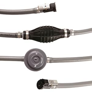 Includes 3/8 inch low-permeation fiber reinforced fuel hose designed to prevent kinking and hardening