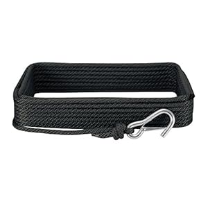 Rope: 25′ of hollow braid polythene rope with plated steel snap hook -