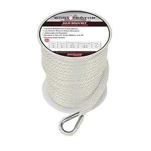 3/8″ x 50′ premium multifilament polypropylene (MFP) solid braid anchor line with stainless steel thimble on one end
