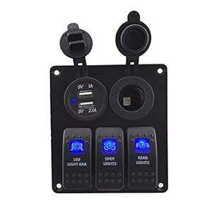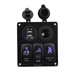 The 3 gang DC12V on-off switch(for rear light,wench power and sasquatch light),DC12V voltmeter and 5V 3.1A dual USB approved Rhos/CE/UL Certify, Totally made of Environment Friendly material.
