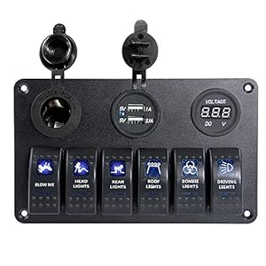 Suitable for both 12V and 24V systems Panel is pre-wired, Short circuit and overheat protection for on-off rocker switch ,dual USB chargers and DC voltmeter