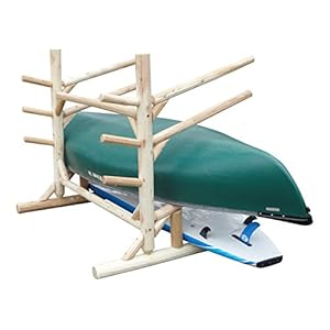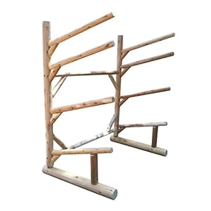 Log Kayak Rack 2-place 1-sided Canoe and Kayak + Paddle Boat...