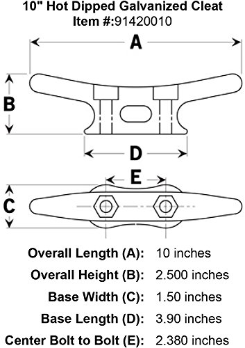 10″ Heavy responsibility sizzling dipped galvanized rope cleat with bolt holes and hexagon recess to make use of with hex head bolts. Can be utilized for dock or deck in saltwater or freshwater packages. Really useful bolt dimension to make use of: three/eight”
