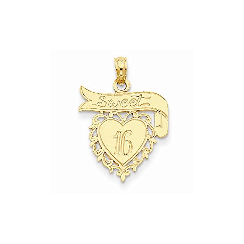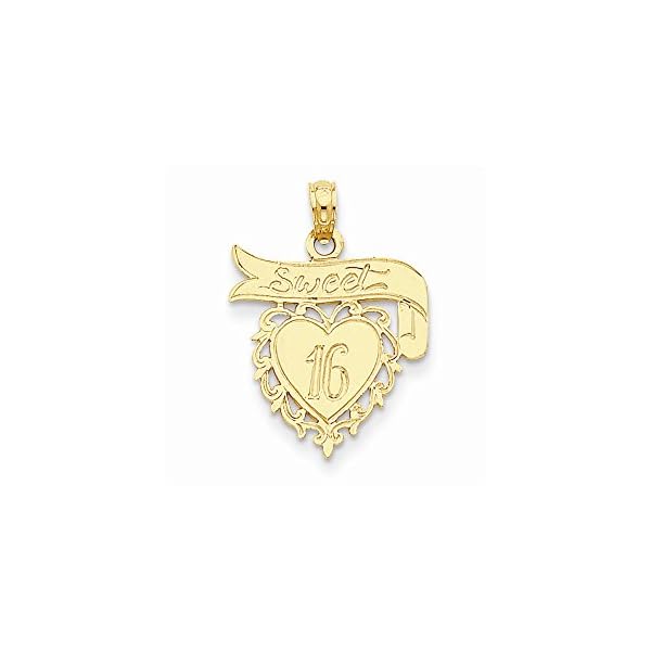 14k Gold Sweet 16 on Heart with Banner Pendant