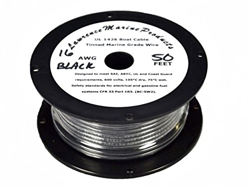 16 AWG Tinned Marine Primary Wire, Black, 50 Feet