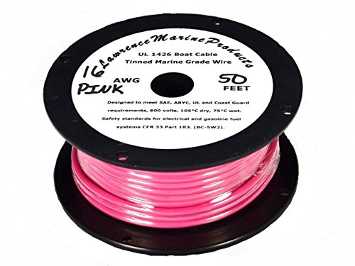 16 AWG Tinned Marine Primary Wire, Pink, 50 Feet