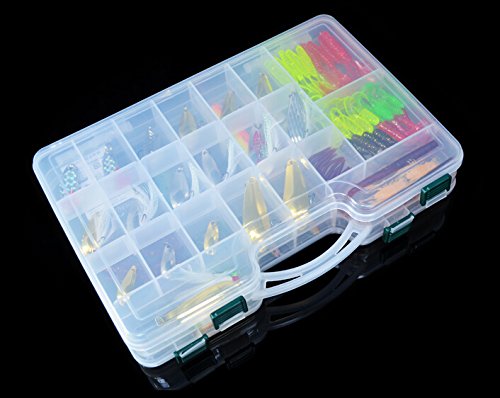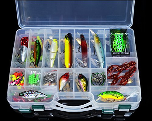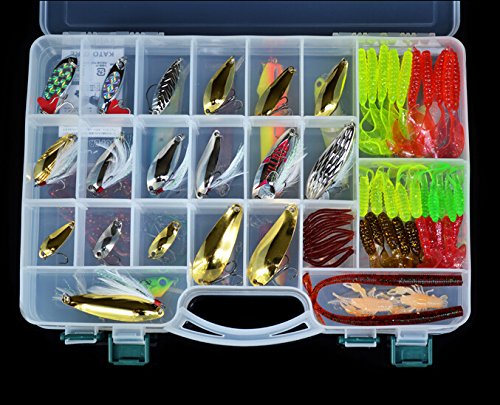 5.Package include: 168 pcs fishing lures in a plastic fishing tackle box.