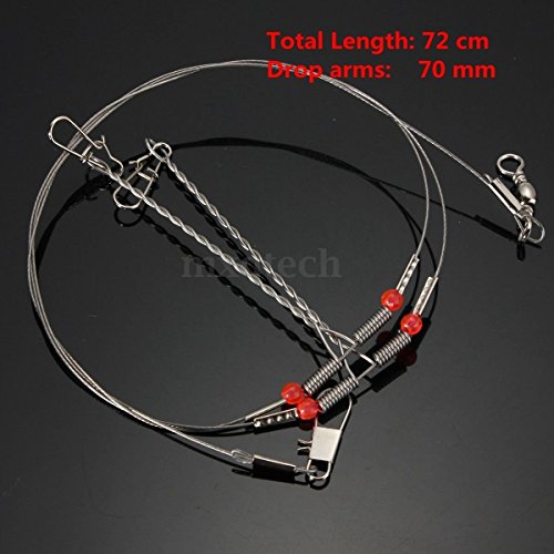 Complete with snap, swivels and beads Ideal for nearly all bottom fishing and surf fishing Easy change Fit various fishing styles and conditions Nylon coated stainless steel (70 cm) Double drop arms (70mm) Stainless steel arms keep the hooks away from leader Complete with snap, swivels and beads Quantity sold:20pcs