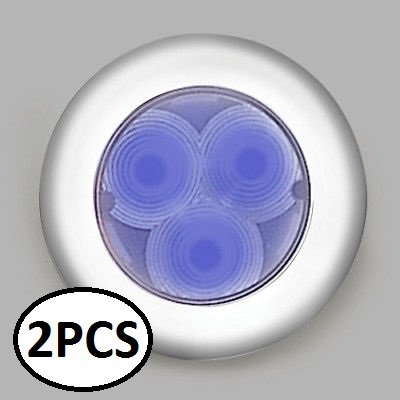 2PCS MARINE BOAT RV TRAILER BUS BLUE LED STAINLESS STEEL ROUND COURTESY LIGHT