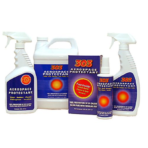 That is the upkeep product manufacturers recommend so much! Simplest ‘303’ beautifies as intensely, protects as powerfully or lasts as long. This gives powerful UV screening protection for colored gel-coat fiberglass, inflatable boats, vinyl, transparent vinyl windows, rubber, plastics and leather.? Just spray on and wipe dry!? Treated surfaces repel dirt, soiling, staining, water spots, salt water and mold. Note: Every bottle of 303 is sold one at a time.
