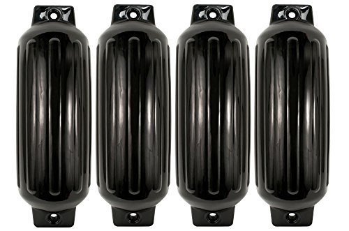 4 Boat Fenders 6.5 x 23 Vinyl Ribbed Bumper Dock Shield Protection Black. Includes (4) 7′ Long Fender Lines & Pump to Inflate