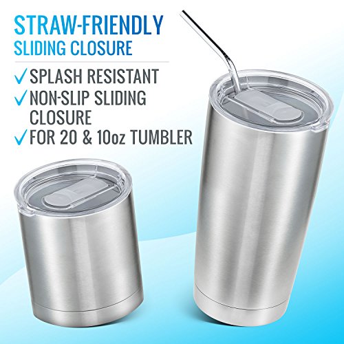 ➤ SPILL-RESISTANT SLIDING LIDS – These superior BAYZI travel tumbler sliding lids feature a convenient no-splash slider closure. Insulate your drinks for longer and more effectively than ever before! PLEASE NOTE: Though closure function prevents most leaks, these sliding closure lids are not designed to be 100% spill proof and may leak if rambler tumbler is held upside down or on its side.