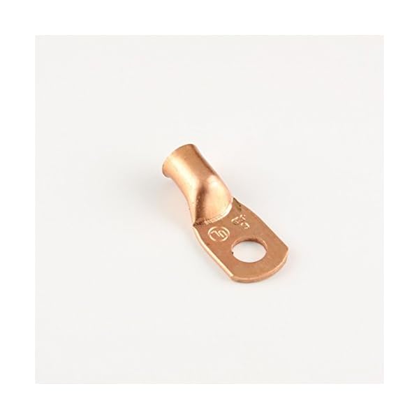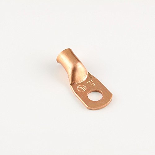 6 gauge 1/4″ stud copper lugs. UL Listed and CSA certified. Seamless copper lug made from 99.nine% pure conductive ETP copper. One piece tongue (no longer sandwiched) lead them to more conductive than a standard copper lug. Obviously marked for wire size. Includes a flared and chamfered barrel to ease application of finely stranded wire or welding cable.