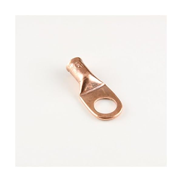 6 gauge 3/8″ stud copper lugs. UL Listed and CSA certified. Seamless copper lug made from 99.nine% pure conductive ETP copper. One piece tongue (no longer sandwiched) cause them to more conductive than an ordinary copper lug. Obviously marked for wire size. Includes a flared and chamfered barrel to ease application of finely stranded wire or welding cable.