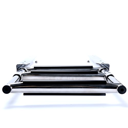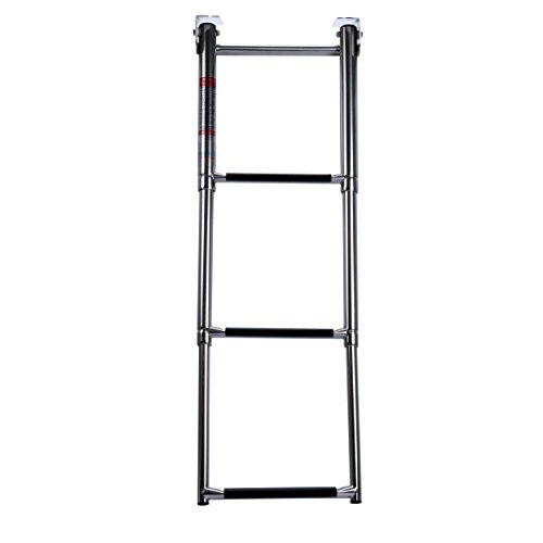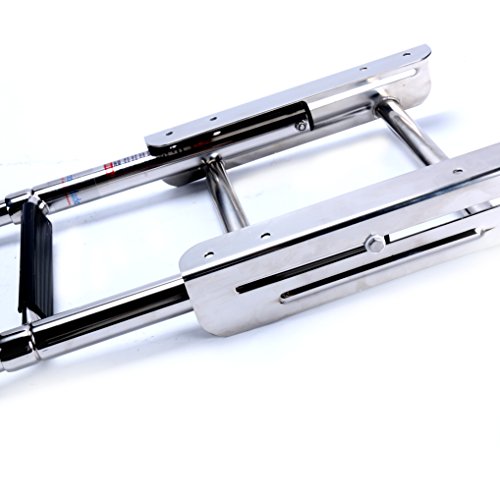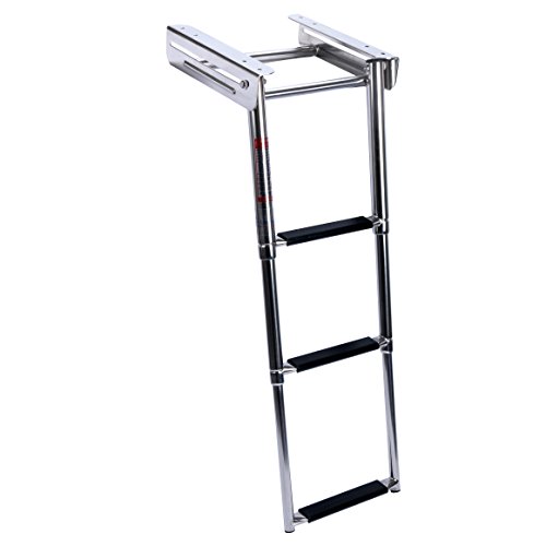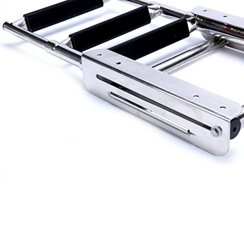 AA, The telescoping steps in this boat ladder fold quickly and effortlessly into the water for protected boarding. For storage, the low profile stainless steel steps fold compactly and in addition gives this boarding ladder a very sleek look.