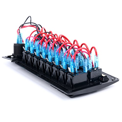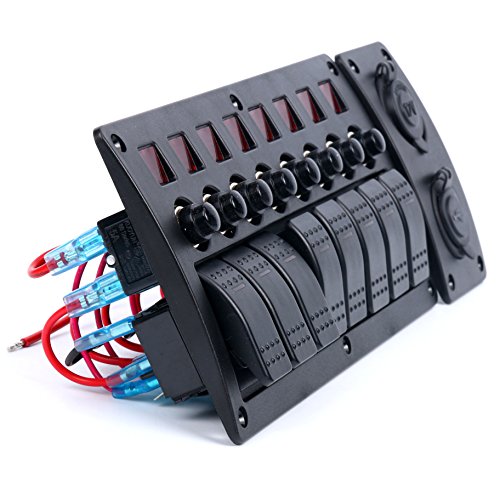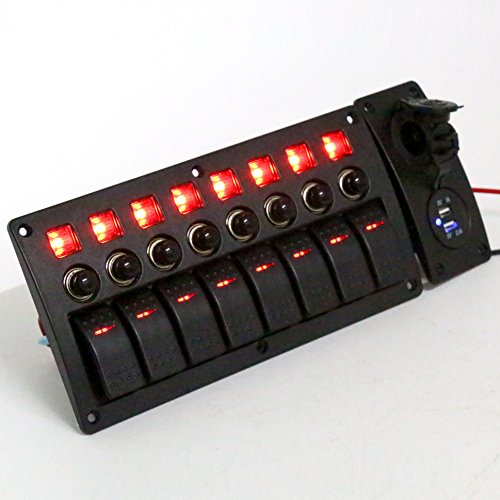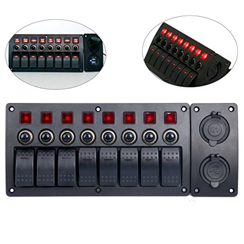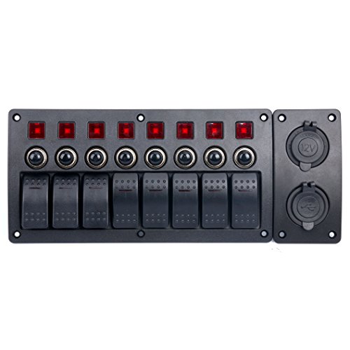 Amarine-made 8 Gang Red LED Indicators Rocker & Circuit Breaker Waterproof Marine Boat Rv Switch Panel Combined with Dual USB / 12v Power Adapter Panel – PN-CB8-R-CB1/S1S2