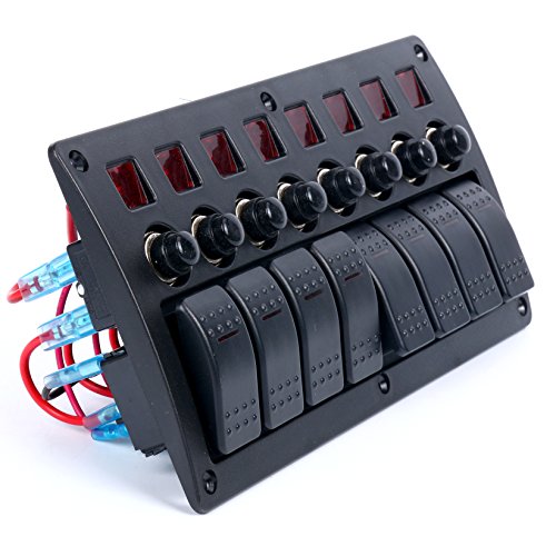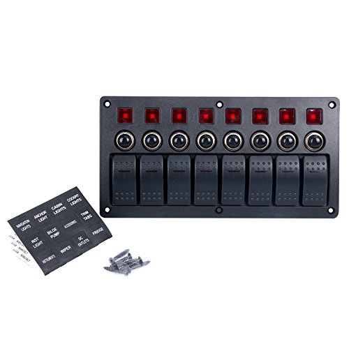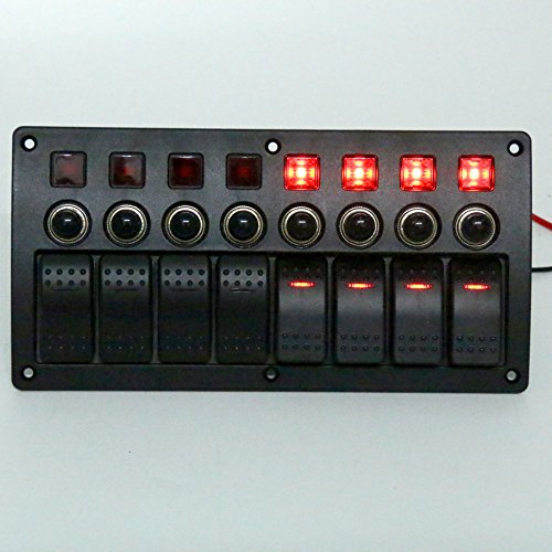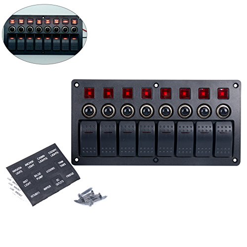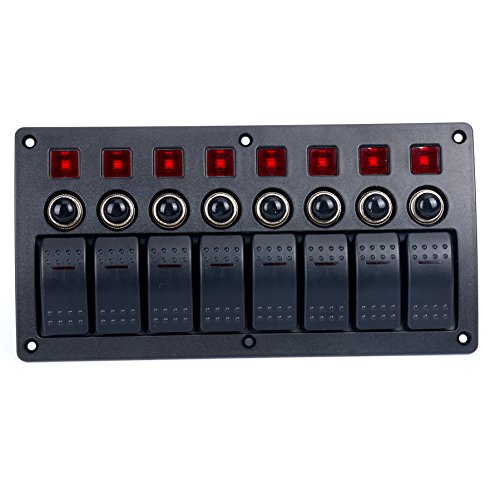 Amarine-made 8 Gang Red LED Indicators Rocker & Circuit Breaker Waterproof Marine Boat Rv Switch Panel – PN-CB8-R
