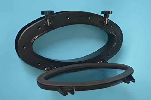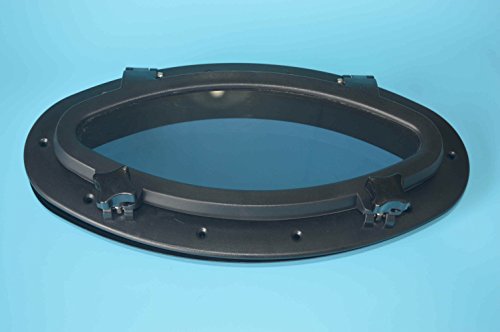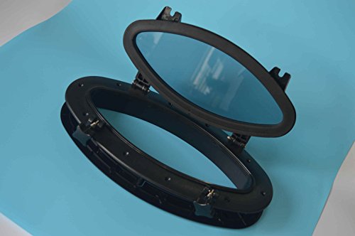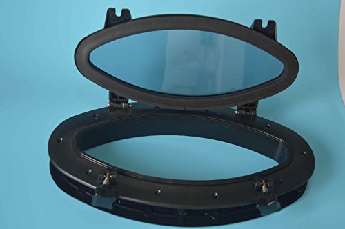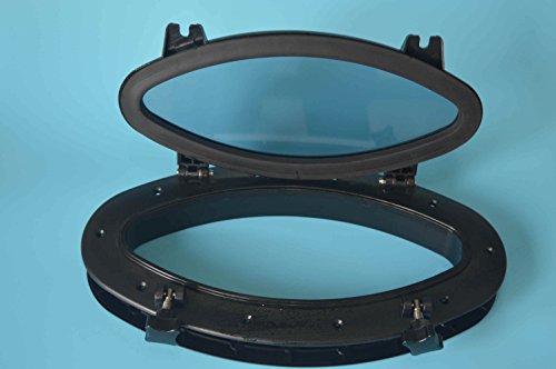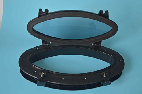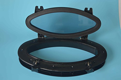 Amarine-made Boat Yacht Elliptical Oval Opening Portlight Porthole 16” X 8-5/8” Replacement Window Port Hole – ABS & Black & Tempered Glass