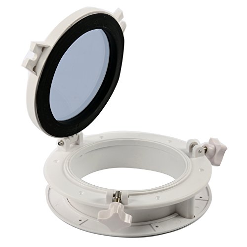 Amarine-made Boat Yacht Round Opening Portlight Porthole 8″ Replacement Window Port Hole – ABS & Clear Tempered Glass