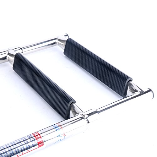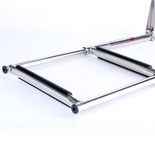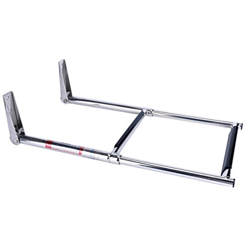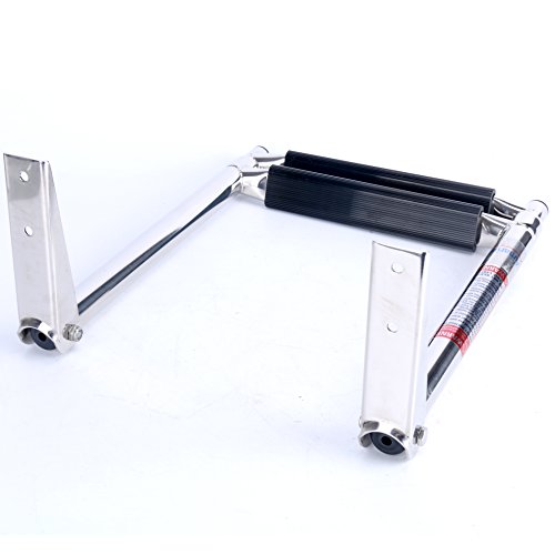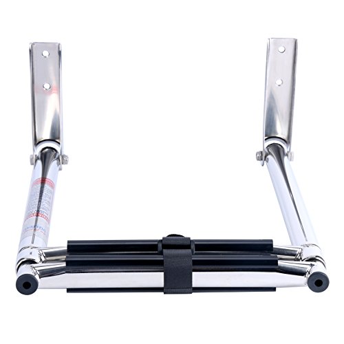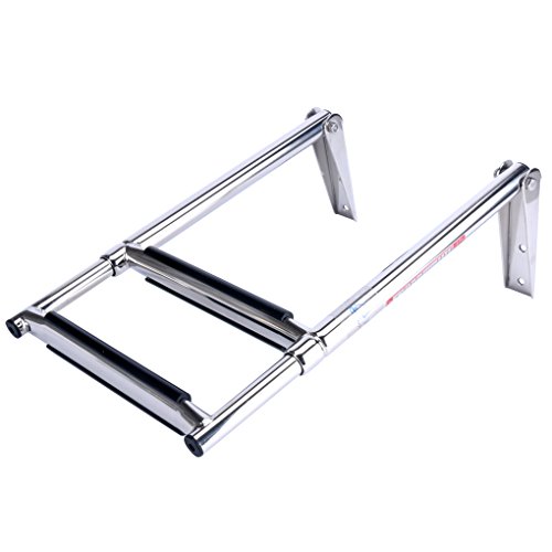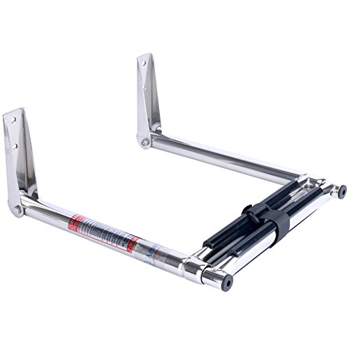 2 steps telescopic platform boat ladder. Product description: The 2 step telescopic boat ladder is made of top quality stainless steel. This telescopic boat ladder is made to be bolted to a horizontal platform any such the boat floor or side railings depending on the installation. The design of this platform ladder makes it conceivable for use as on a pontoon boat. Some of customers have also used this as a low profile dock ladder. Installation is really easy, simply bolt the ladder to a horizontal platform and you are prepared to use it! The steps feature nonslip rubber for your safety in addition to a Velcro strap for securing the ladder in a non extended position. 3 step telescopic platform boat ladder specifications: Folded length: 13 3/8″ Fully extended: 231/4″ Outdoor to Outdoor width: 12″ Mounting hole distance: 10.0″ / 254Mm The 3step stainless steel telescopic boat ladder has been designed to be compact and efficient. Sleekly designed and manufactured from a high-grade stainless steel, this marine product has been designed to last in the harsh marine conditions. 100% brand new marine grade product . Durable construction 304 stainless steel , compact and efficient telescopic design, 3 tier step boat ladder, molded black vinyl tread to facilitate easy boarding and ensuring maximum grip for the user, reducing slippage. Horizontal mount (top of platform) hinged bracket allows for the ladder to fold over platform for easy fitting. Stores on top. Sleek and up to date design: Requires mounting screws (stainless steel advisable for marine applications) , 25.4 cm mounting hole distance.