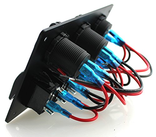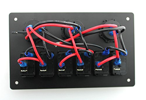Including 1x 6 gang switch panel with Cigarette Socket Double USB Power voltmeter Charger,3x 14 AWG gauge fuse holder,3x 5A fuse,3x 10A fuse,3x 15A fuse.12x Insulated Heat Shrink Butt,2x sets sticker labels and 4 screws for the panel.