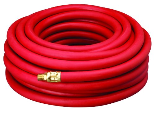 The Amflo 515-50 red rubber air hose has a 1/2″ ID and is 50 ft. long. Its rubber construction provides resistance to abrasion and allows the hose to remain flexible at temperatures ranging from -20 to +165 degrees F. Its polyester yarn reinforcement provides the strength necessary to achieve and take care of its maximum pressure rating of 300 pounds per square inch (psi), and it comes equipped with two 1/2″ factory-installed brass male National Pipe Thread Taper (NPT) fittings. This hose is suitable for quite a lot of commercial and industrial pneumatic applications.