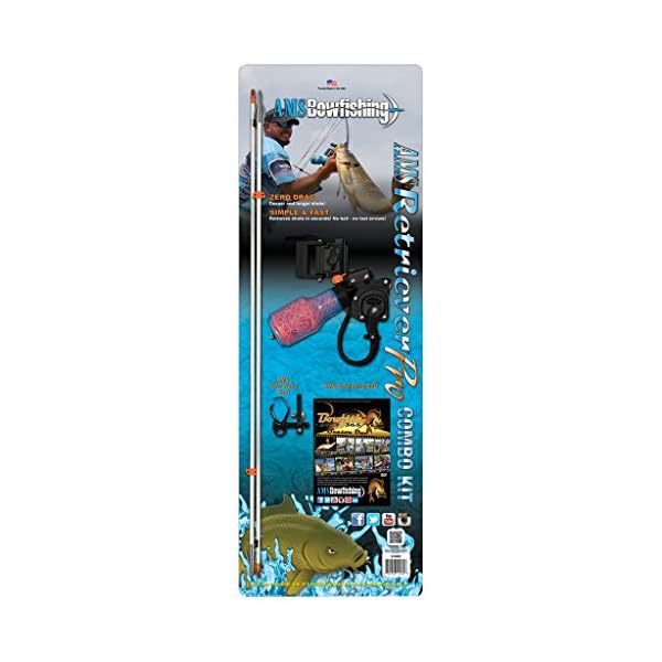 The fastest, most convenient way to start bowfishing today! Use your own bow or any of the AMS bows. The kit includes the AMS Retriever Pro with 200# Dacron line, AMS Tidal Wave Rest, two of your favorite AMS Bowfishing fiberglass arrows and the “Between the Banks” DVD. Right Hand Retrieve.