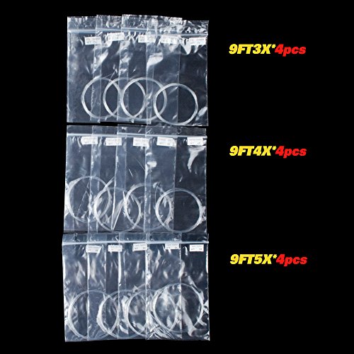 9ft 3X, 4X, 5X; 4pcs each size; total 12 packed. Handful choice for the whole fishing season even for fishing different species like salmon, steelhead, trout…