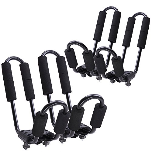 AW 2 Pairs J-Bar Kayak Rack Canoe Carrier Boat Holder Top Mounted on Car Crossbar (Set of 4 Pcs)
